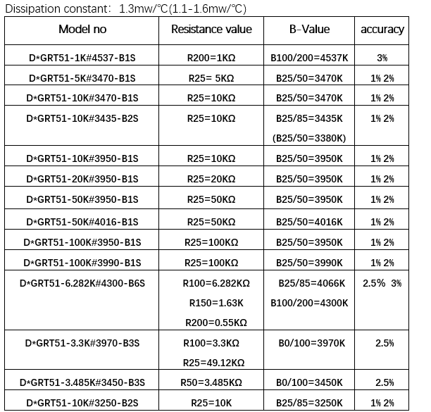 GRT Type NTC was named as per their shape and characteristics, and know this NTC characteristics from their model number