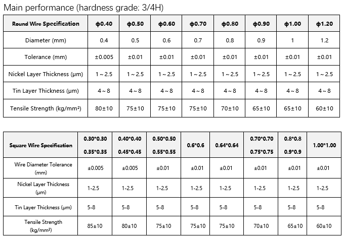 This product is made by taking high-quality tin-copper alloy as the core wire, drawing it after softening, electroplating a nickel layer, and then electroplating a bright pure tin layer. It is used for connectors and connective components. The most commonly used hardness grade is 3/4H.